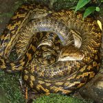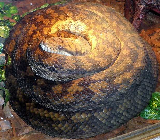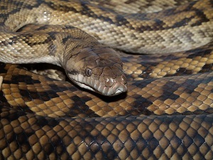 Amethystine python is a nonvenomous snake occurring in Indonesia, Papua New Guinea and Australia. The snake exhibits an amethyst coloured shine over its body and hence its name. It is the longest nonvenomous snake in Australia. Currently, there are four subspecies of this species.